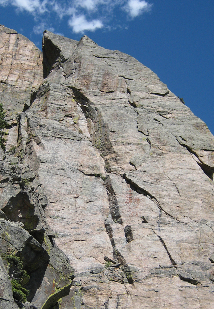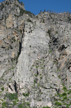 Upper part of Rosina's Other Side. The route follows the dihedral system left of the center. |