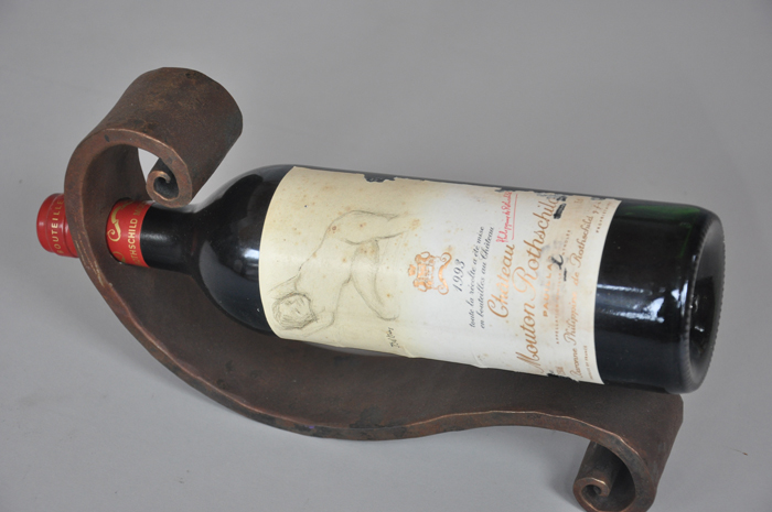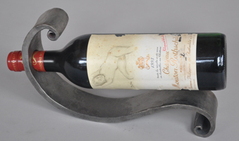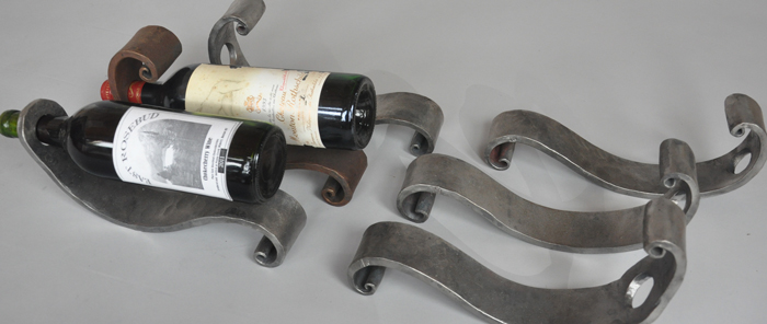 Wine bottle holders in slightly differenent shapes and finishes. Bottles tops point down to keep the cork wet and tight to age well over time.